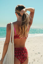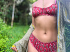 A first-of-its-kind in intimate and swimwear, the Hibiscus Set is crafted from 100% cotton fabric, printed by hand using traditional block printing techniques. Thoughtfully designed with high-coverage bottoms, gentle elastic at the waist and groin, contrast pico edging, and a flattering bustier-style top, this set blends comfort with conscious design. Free from plastic-based fabrics and using only minimal elastic, it's both lounge-ready and swim-approved. A true MAIKAI innovation—designed to feel good on the body and do better for the planet. Please pre wash in salt water before use. Meant to be worn in the sea. Do not wear in chlorinated water.