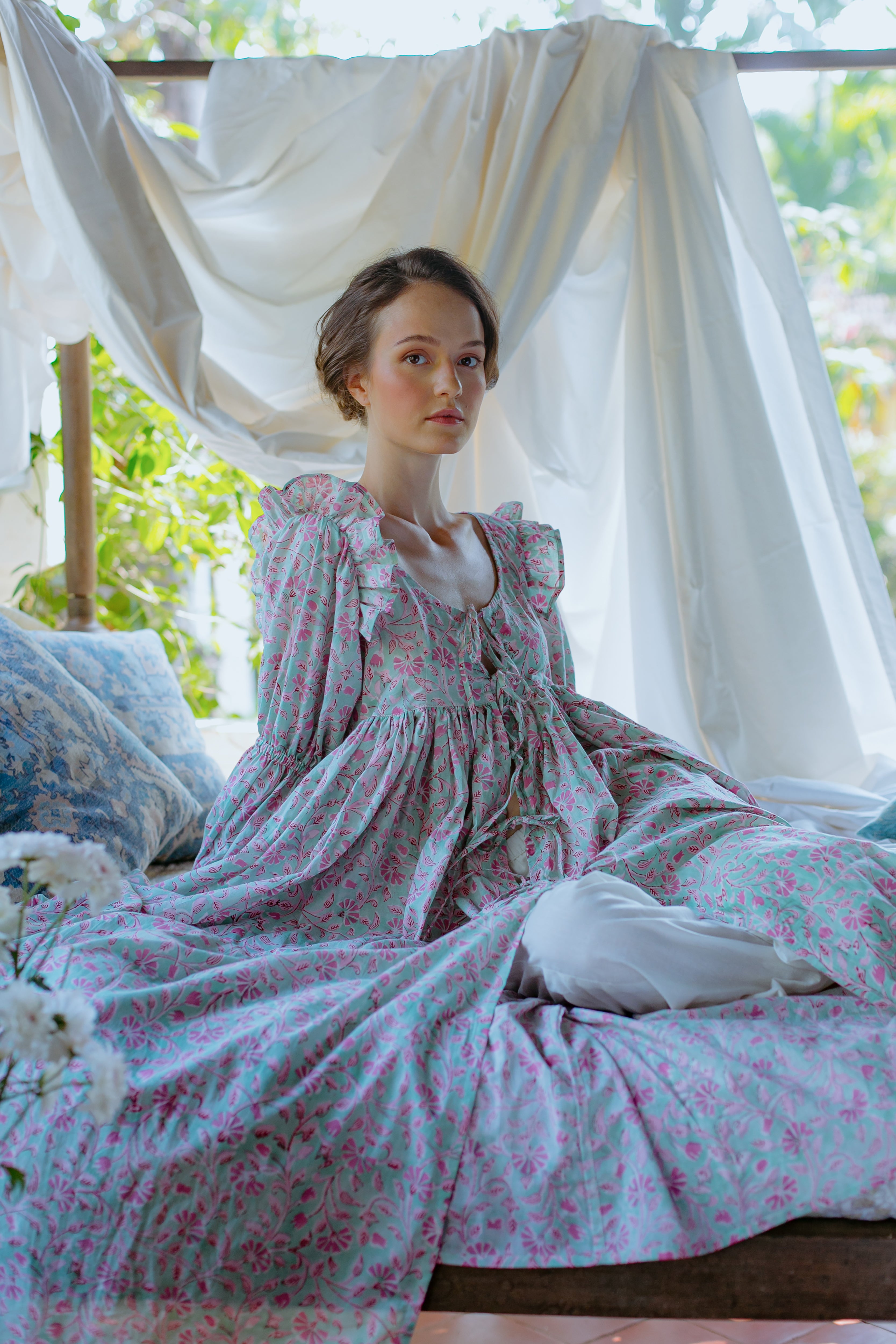 We recommend hand washing in cold water with a mild, natural detergent to maintain the softness of the cotton and the clarity of the hand block print.