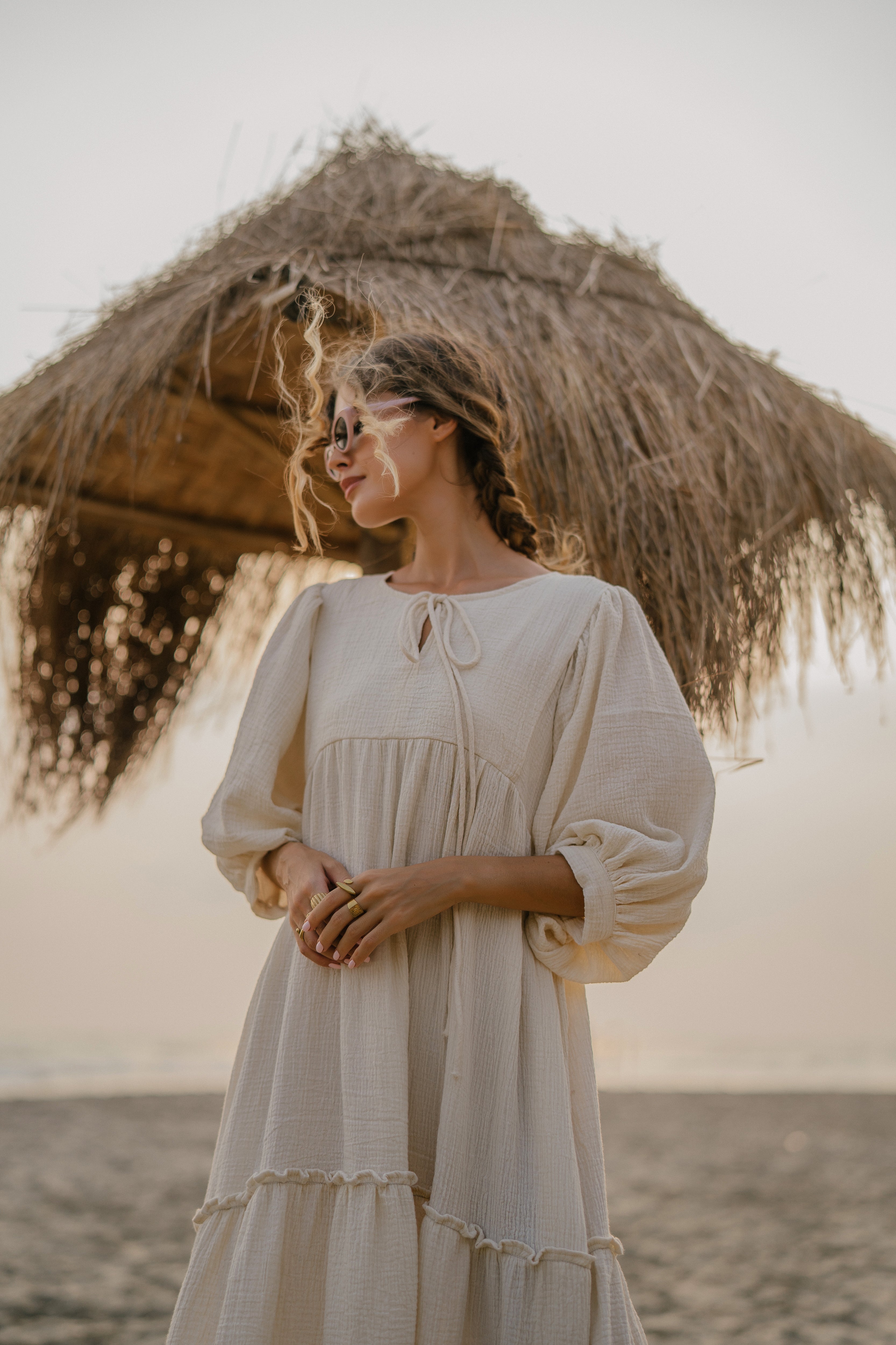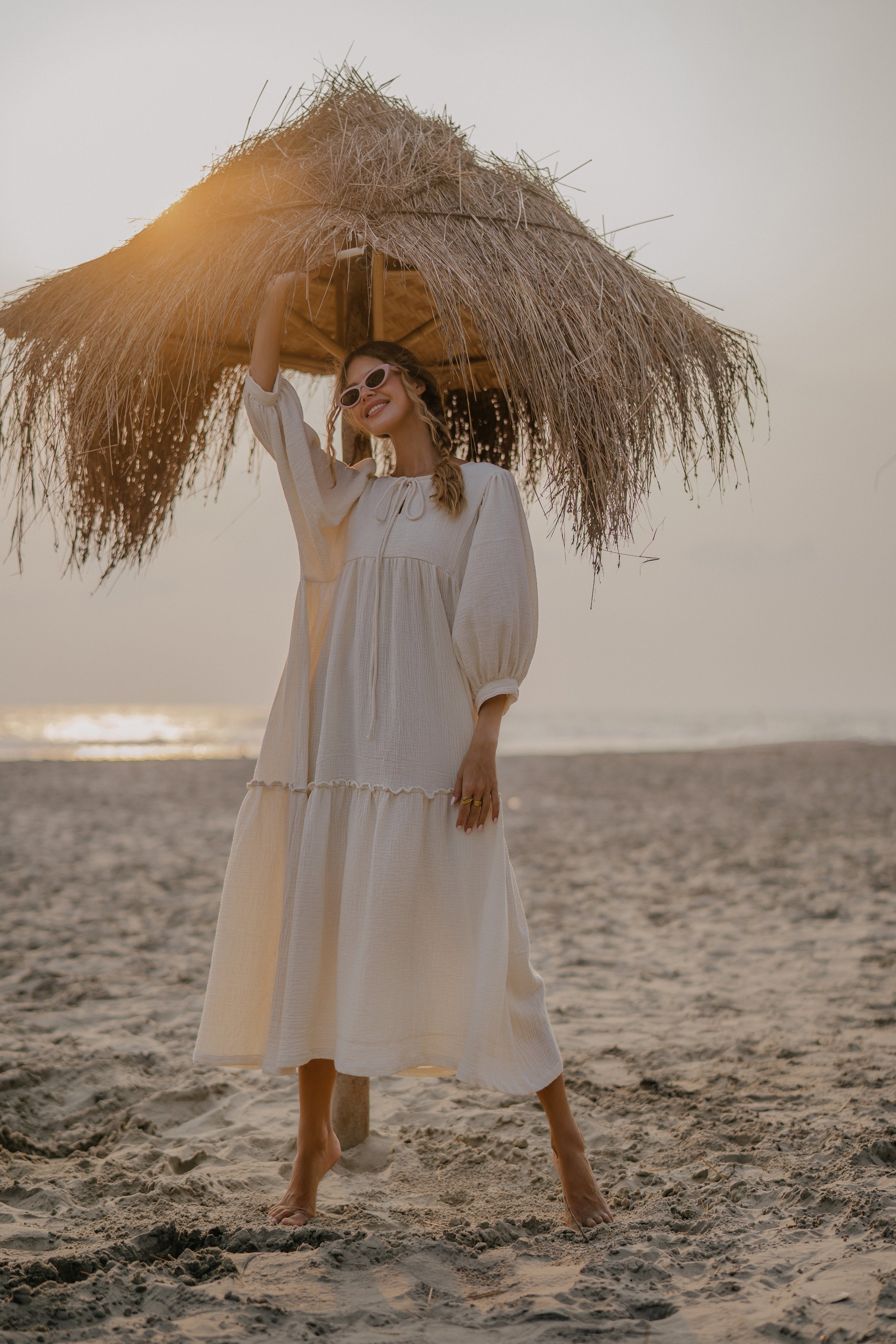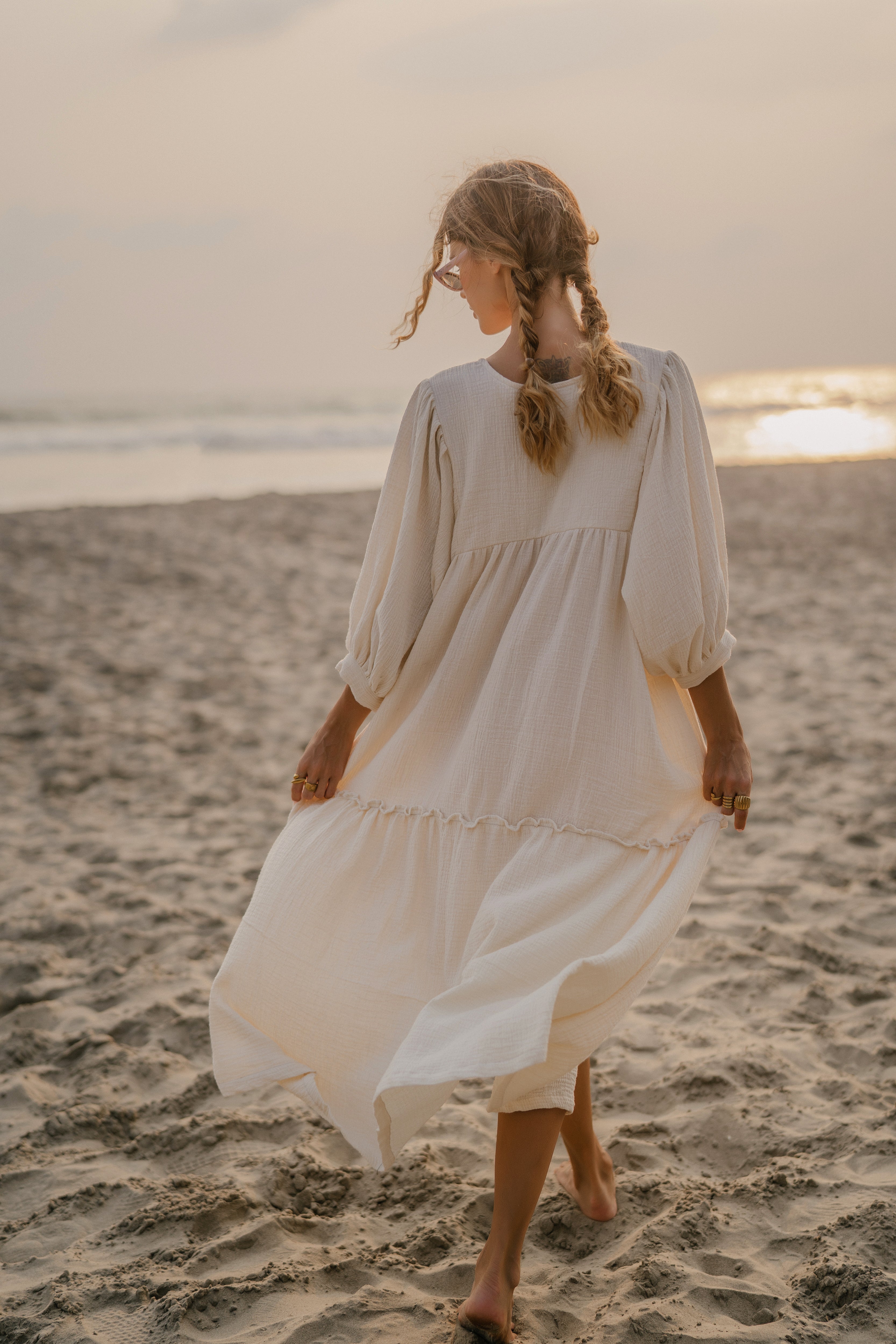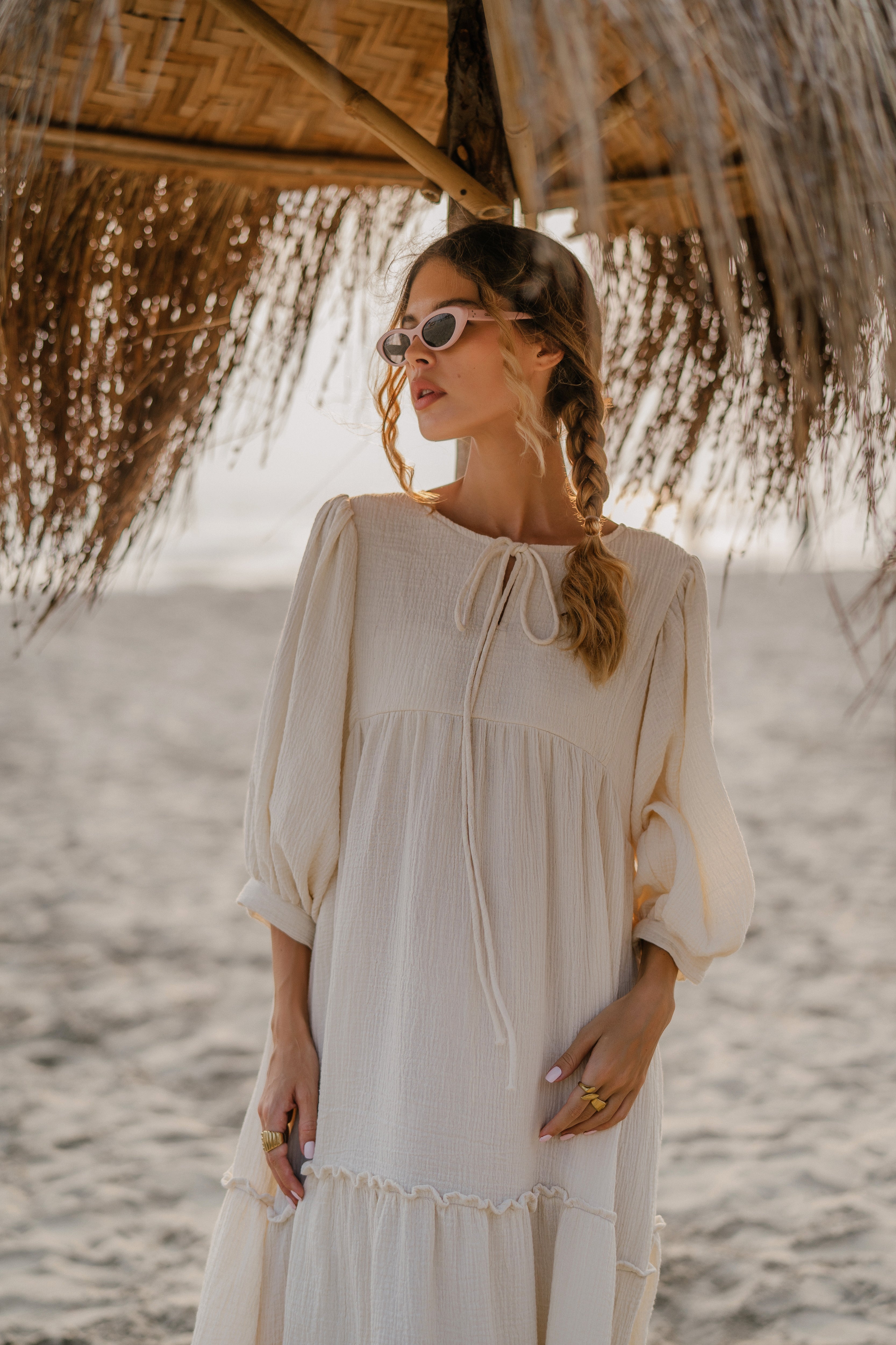 Our bestseller, Elysian is a vintage milkmaid dress inspired, tiered maxi dress for a romantic fit. Crafted in 100% kora cotton. The Zephyr corset is a limited edition piece- our first ever corset.