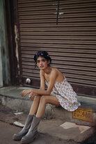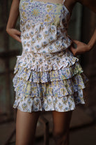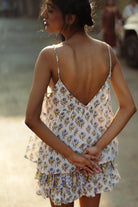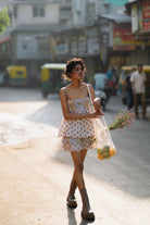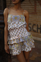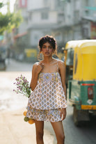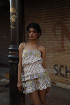 Cami top with a contrast bib in the front, paired with a ruffled contrast trim mini skirt. If there's one thing you'll be wearing from brunches to festivals in holiday season, it is this set.