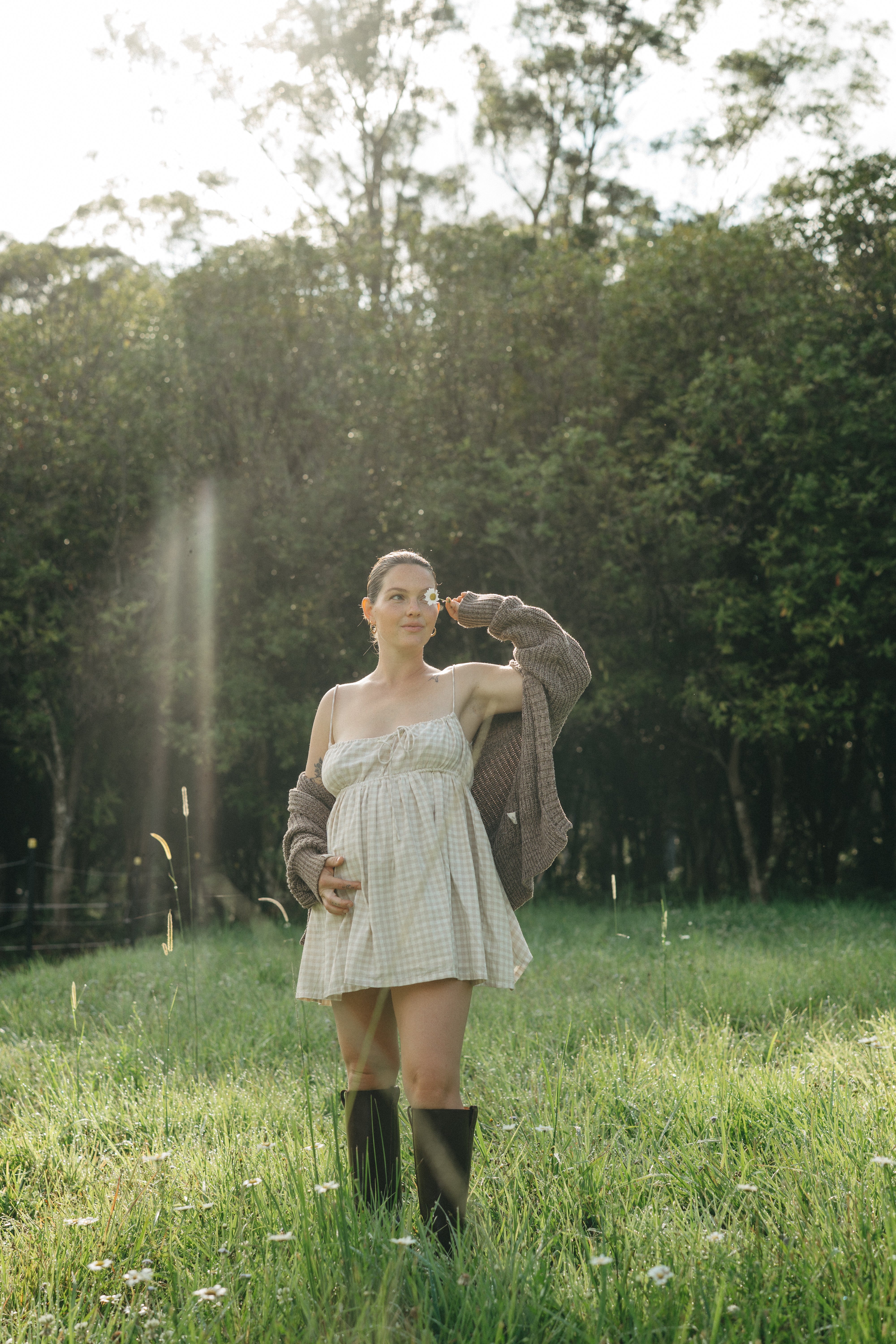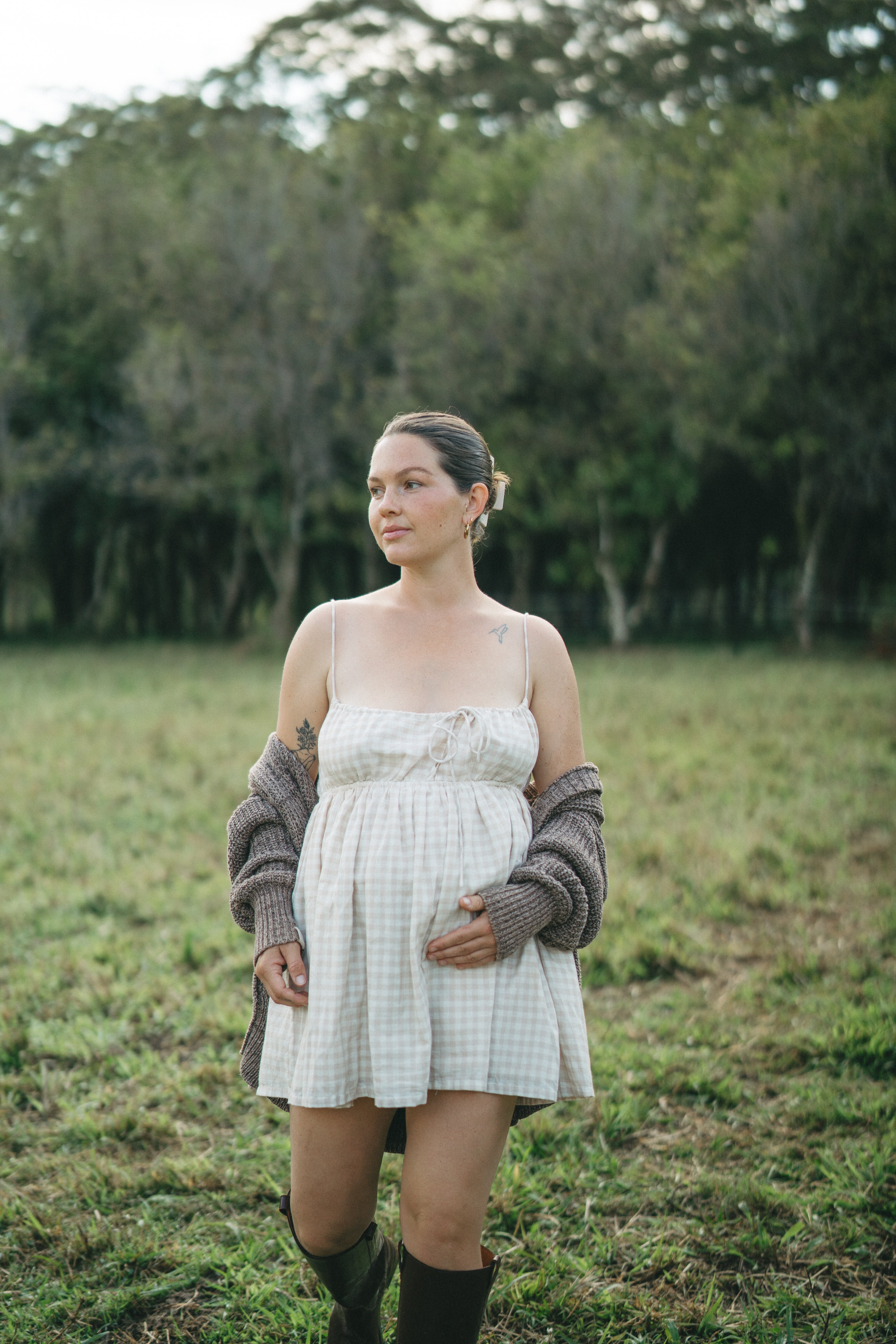 Your favorite now in a mini version. This silhouette was born two summers ago from a simple question. Can a dress walk with a woman through every phase of her life? With room to breathe and adjustable drawstrings, Aurora adapts to the ebbs and flows of your body.
