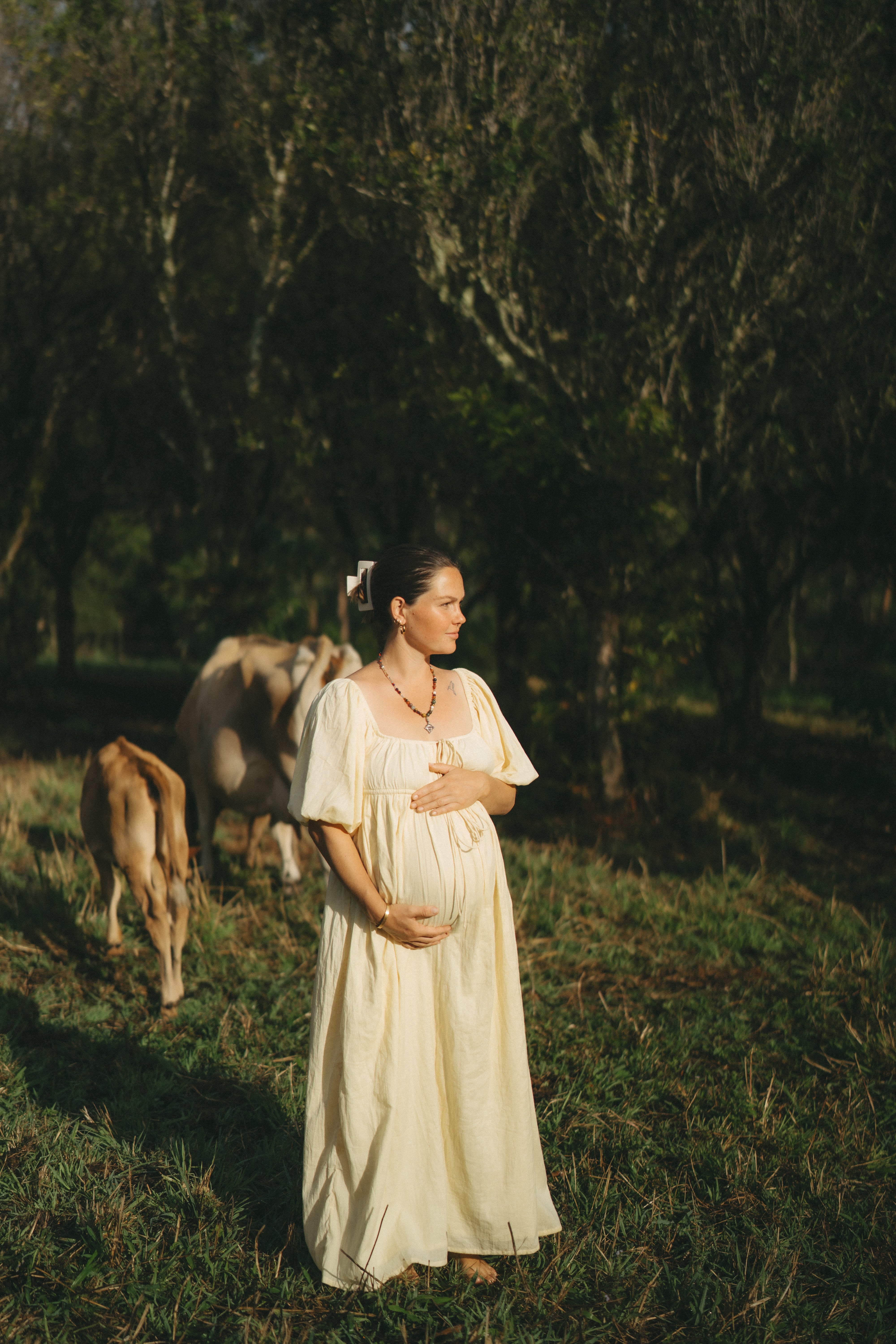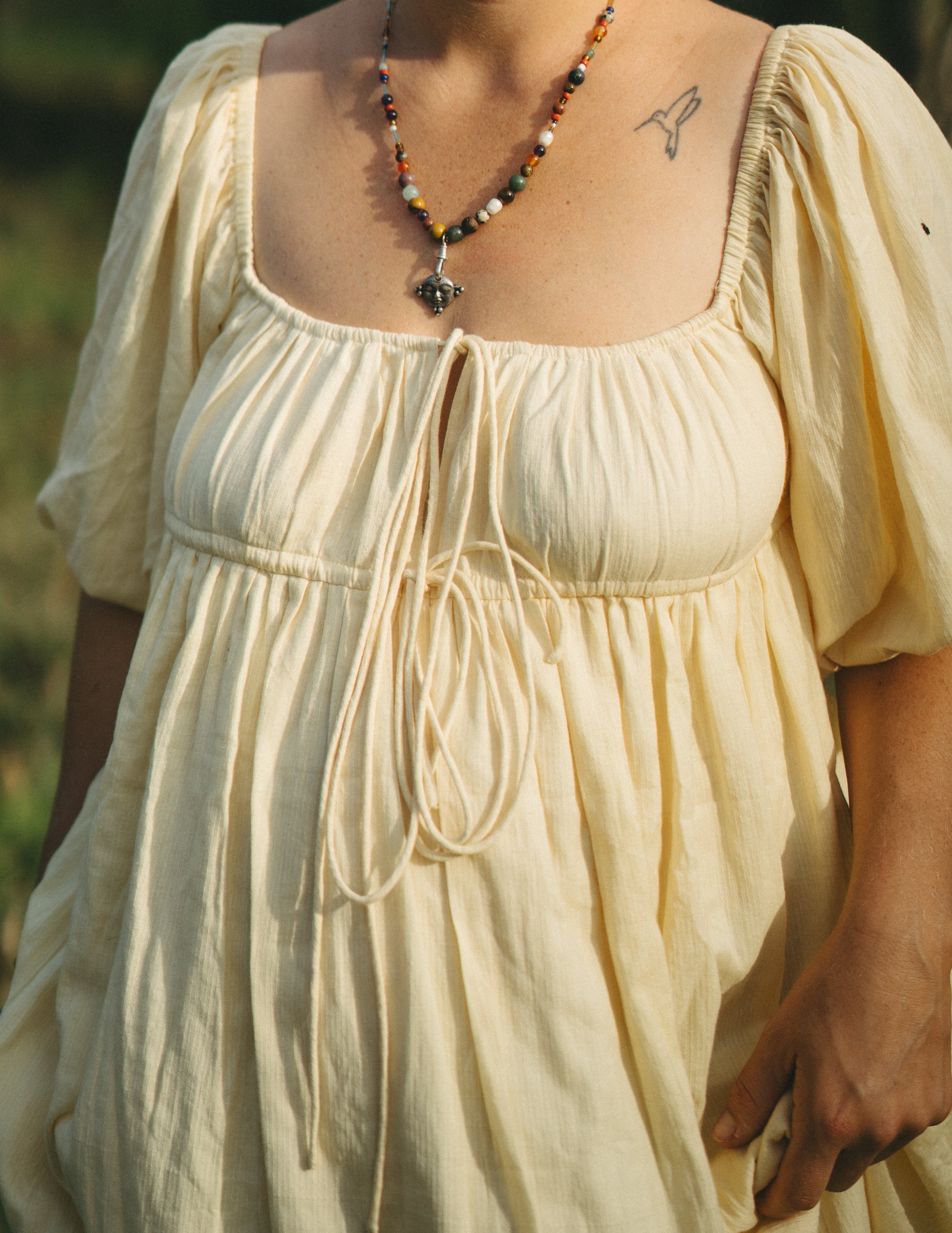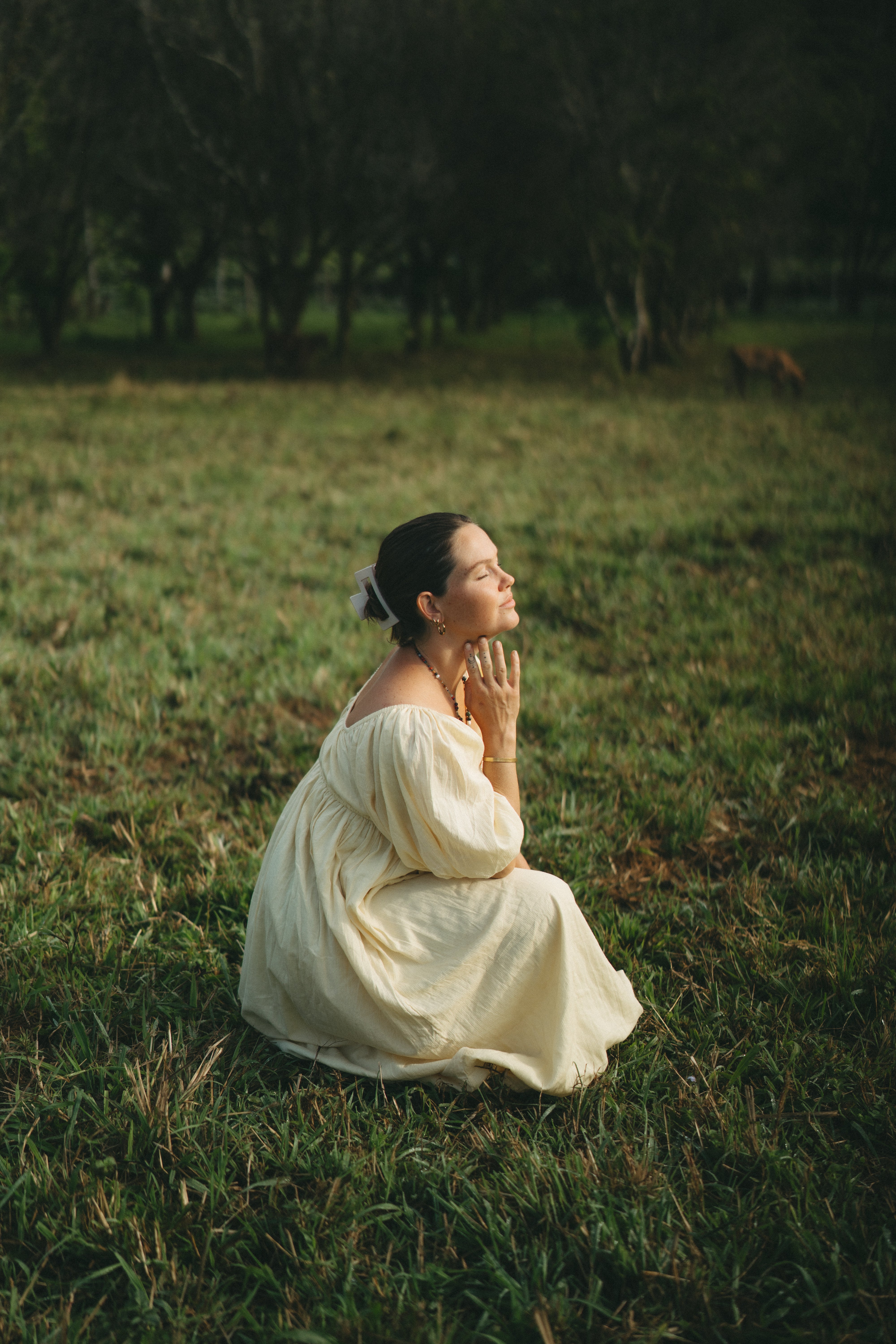 This silhouette was born two summers ago from a simple question. Can a dress walk with a woman through every phase of her life? With room to breathe and adjustable drawstrings, Aurora adapts to the ebbs and flows of your body.