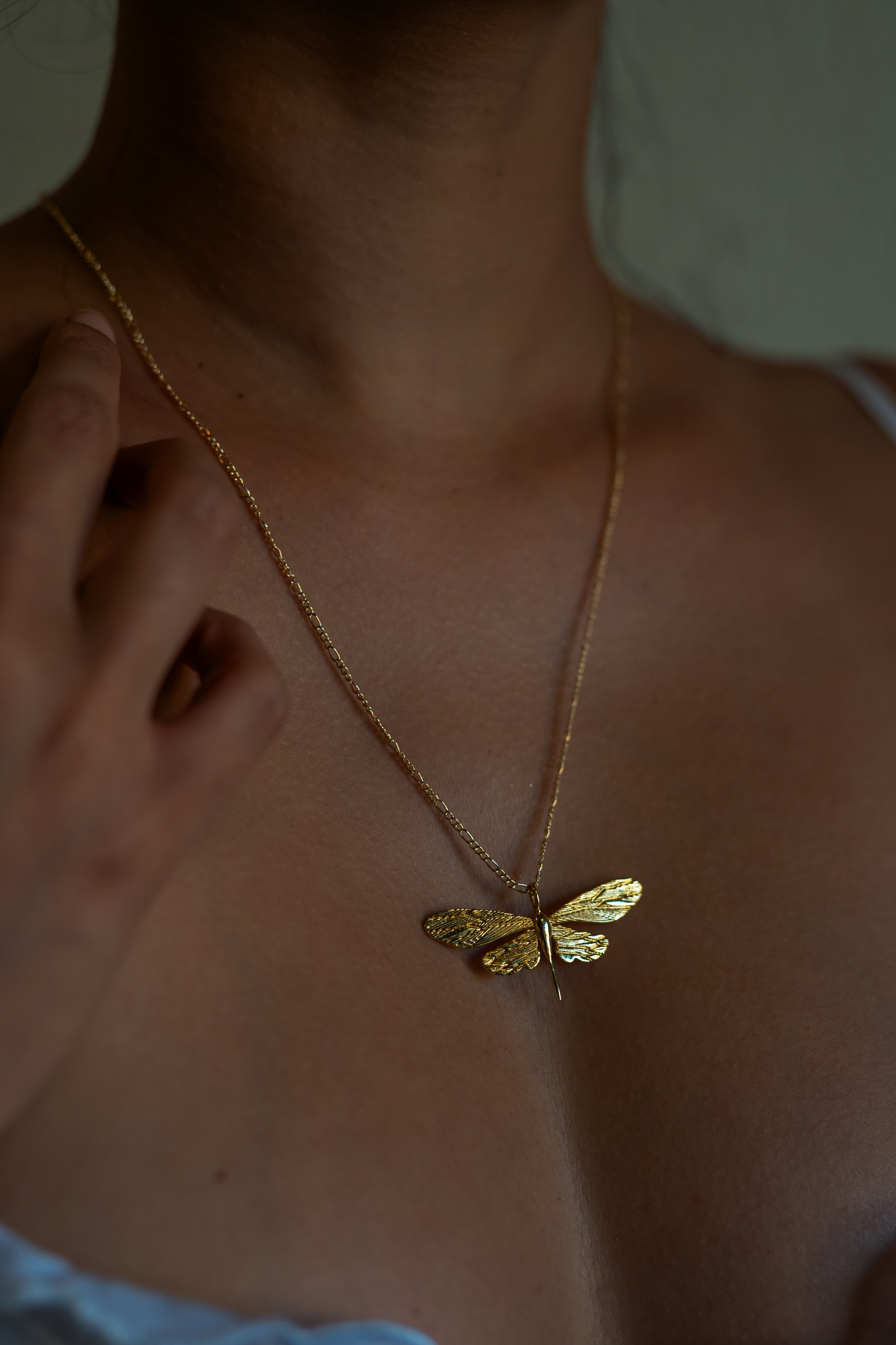 This pendant symbolising the graceful dragonfly—a timeless emblem of transformation and inner strength. Delicately crafted with intricate details, this pendant captures the dragonfly's ethereal beauty, symbolizing adaptability and clarity. Wear it as a reminder to embrace change, trust your journey, and let your spirit soar with lightness and grace.