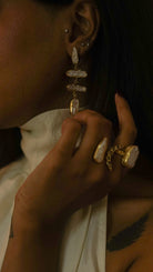 Our jewellery is handcrafted using Nickel free brass and natural pearls, blending traditional Indian metalwork with soft, modern forms. Brass, an alloy made from copper and zinc, has long been revered for its durability, grounding energy, and golden warmth, often used in ceremonial and temple adornments across India.