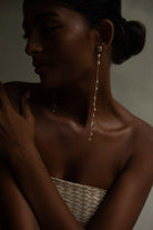 Our jewellery is handcrafted using Nickel free brass and natural pearls, blending traditional Indian metalwork with soft, modern forms. Brass, an alloy made from copper and zinc, has long been revered for its durability, grounding energy, and golden warmth, often used in ceremonial and temple adornments across India.