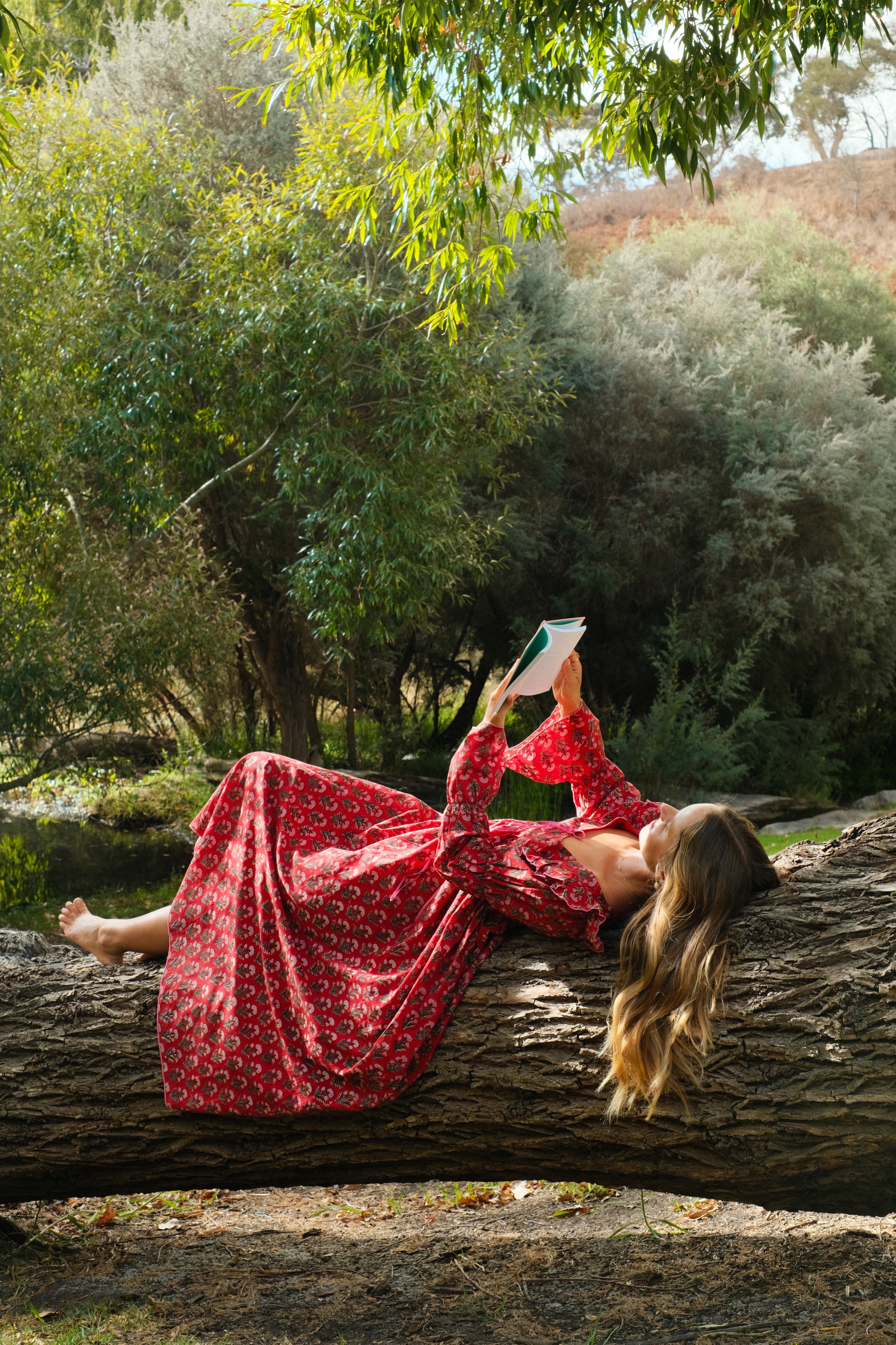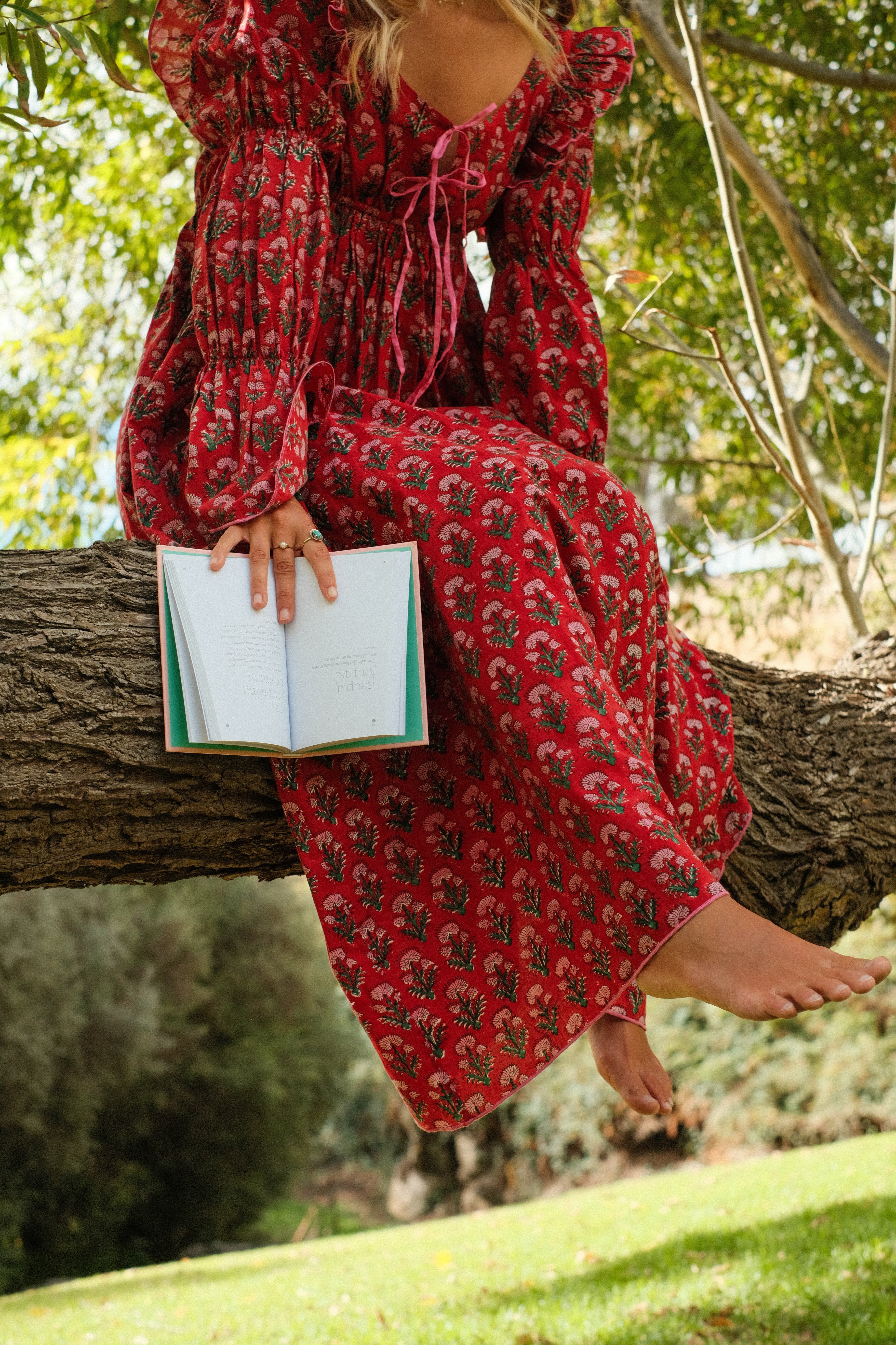 A beloved revival from our Midsummer Dreams Spring–Summer '23 capsule, the Eleanor Dress returns with its signature full-length sleeves, empire waist, and a contrast pink tie-up lace front. Light, airy, and effortlessly romantic, it’s made for barefoot walks through wildflowers and gatherings that linger into twilight.