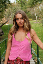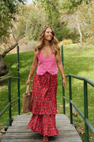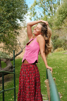 The Emma Skirt is an A-line maxi designed with two flowing tiers, crafted from handwoven cotton in our vibrant Hibiscus spring print. A delicate contrast pink picot trim adds a playful, whimsical finish, making it the perfect piece for brunches, countryside walks, or slow afternoons to yourself. Pair it with the Dawn Vest or Amelie Blouse for an effortlessly romantic, put-together look.