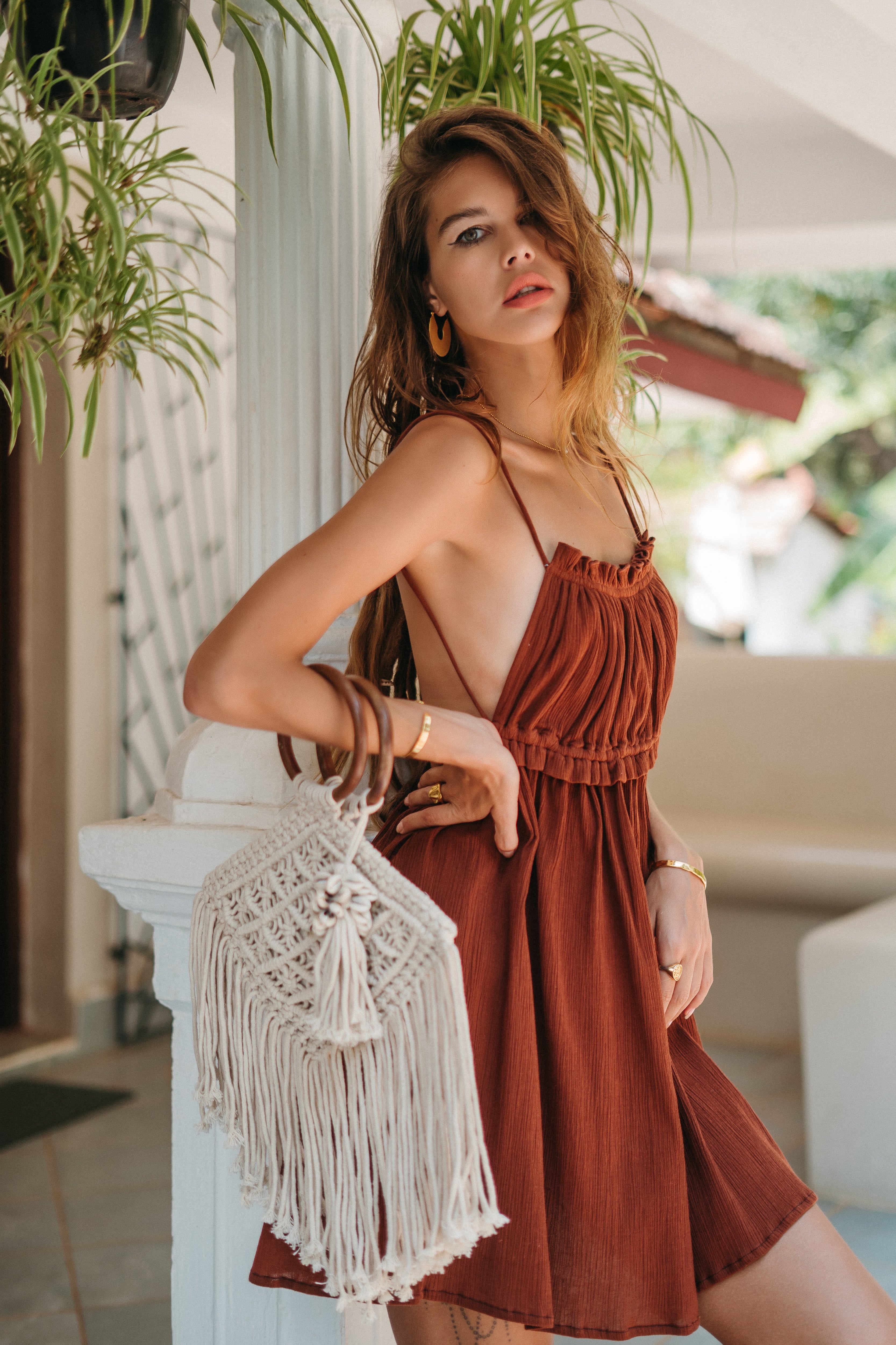 Luna Backless Dress in Terracota