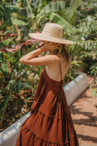 The dress has a relaxed a line fit. It has a tie back that gives you an adjustable sleeve length and creates a plunge back.
