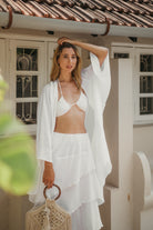 This kimono makes for the perfect layering piece through the year as it folds into an easy carry on in your purse.