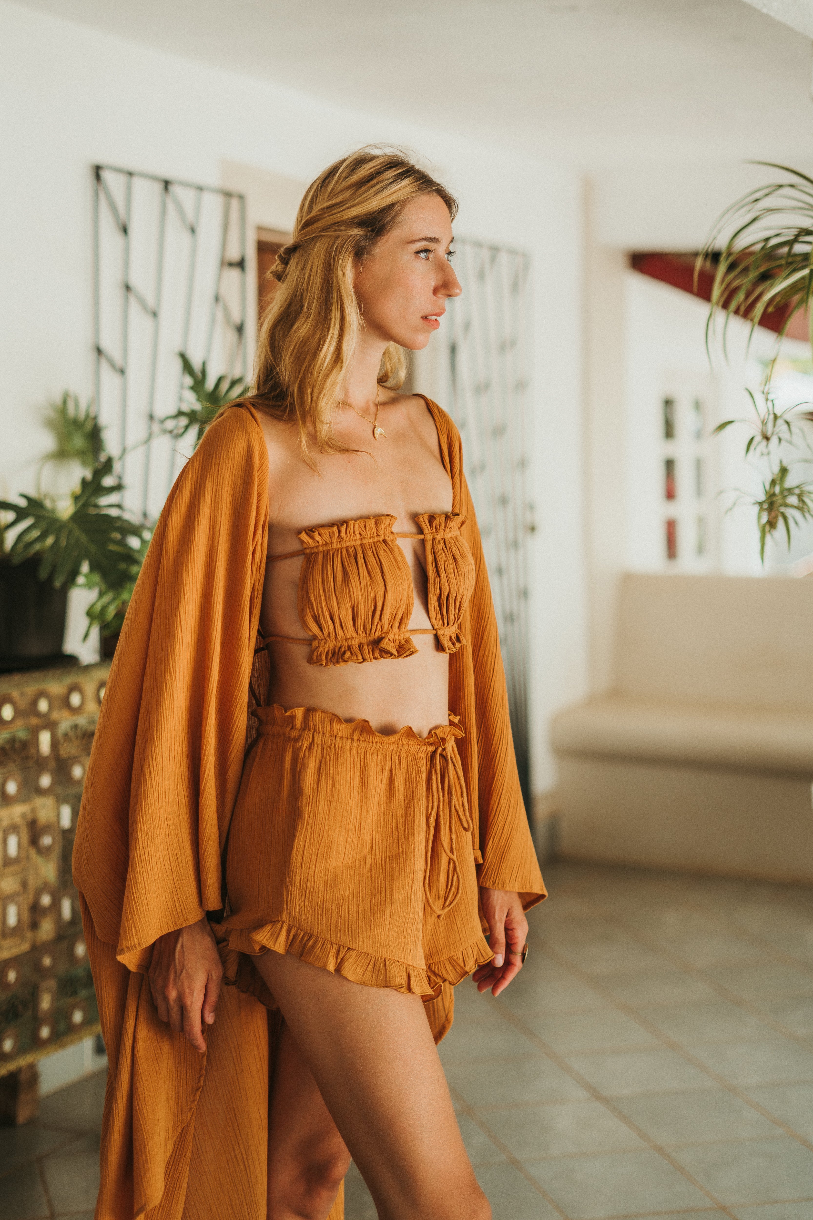Studio MAIKAl pieces are made with GOTS-certified organic cotton, grown without harmful pesticides or chemicals, supporting healthier soils and safer working conditions for farmers in India. Dyed with botanical pigments, a slower, gentler process that is kinder to your skin and leaves far less impact on our waterways.