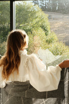 Romantic arm warmers inspired by vintage Victorian silhouettes. Crafted from 100% organic cotton, it features delicate frills, soft ruffles, and a graceful tie-up neckline that lets you style this with cherished pieces of your wardrobe
