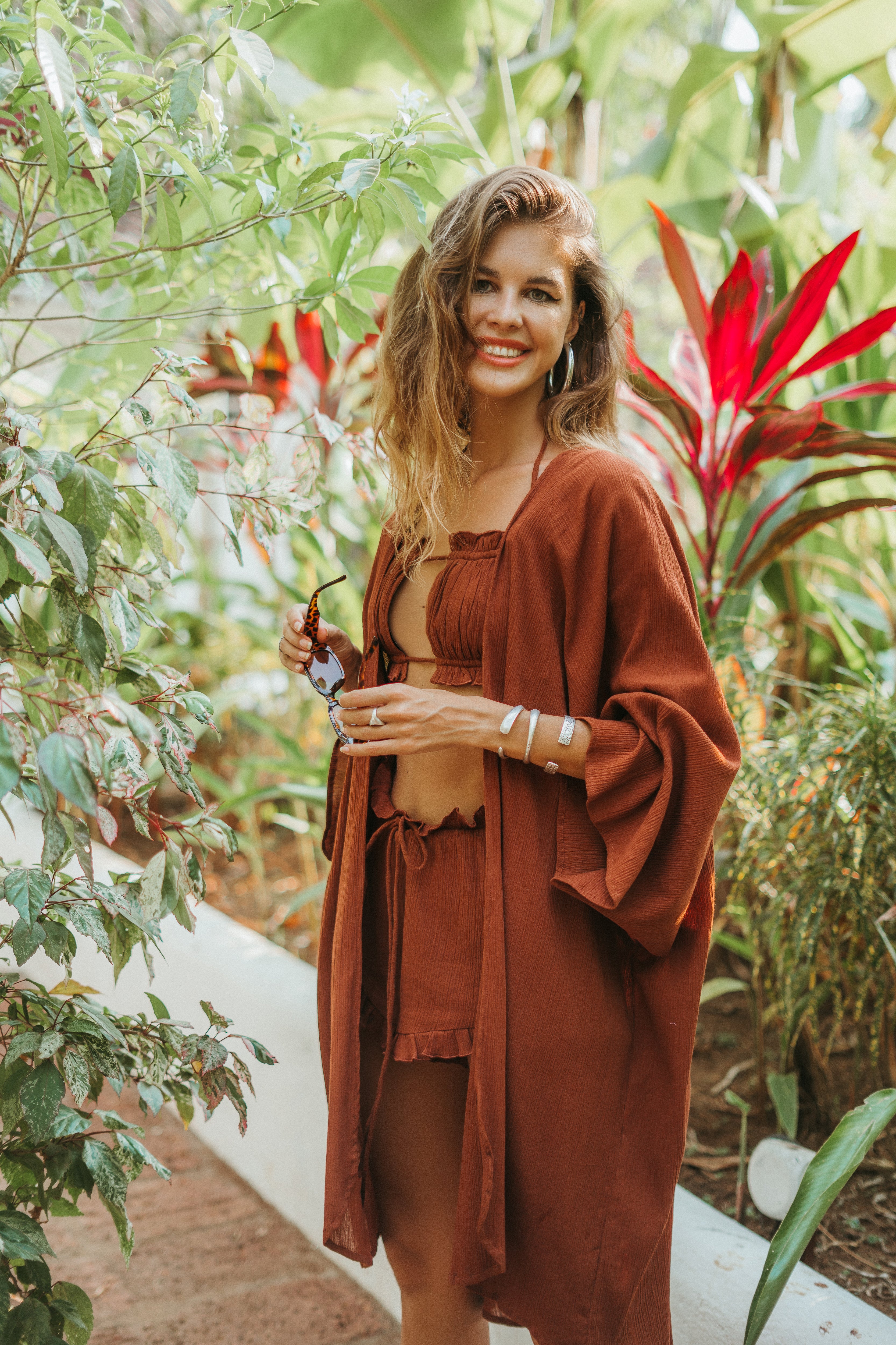 This kimono makes for the perfect layering piece through the year as it folds into an easy carry on in your purse.