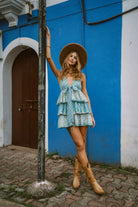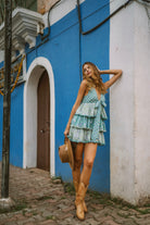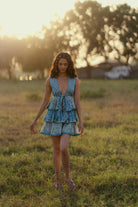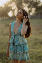 Plunge neck with a front tie closure and has a three layer flared bottom. This is our fresh take on the very first dress we ever made at Maikai. Limited Edition. All limited editions are made with our small batch textiles which will never be remade, once sold out, making those pieces a rare addition for your cherished wardrobe.